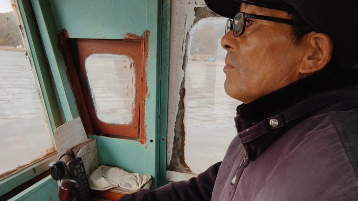 在長鏡頭作品《海民》中,拍攝者使用了“一鏡到底”的拍攝手法,整整49秒的視頻只由一個畫面組成。畫面從一個隔窗相望的國旗,經過一排工具,逐漸聚焦至人臉、手部特寫,最后移至外面天空、海面。我們可以看到,這個長達49秒的手持拍攝鏡頭非常穩定,無論是拍攝設備的角度、位置調整,還是拍攝者走動的過程中,都很穩定。這也使得各個場景之間的銜接非常順滑、連貫,沒有頓挫感。