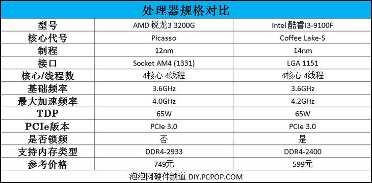 此次測(cè)試的CPU性能部分,筆者為AMD銳龍3 3200G處理器找的對(duì)手為Intel酷睿i3-9100F。顯卡性能部分,筆者為AMD銳龍3 3200G處理器找的對(duì)手為NVIDIA GeForce GT 1030。
