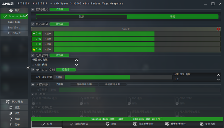 通過(guò)AMD Ryzen Master這款軟件,筆者能夠?qū)MD銳龍3 3200G處理器進(jìn)行雙超操作。