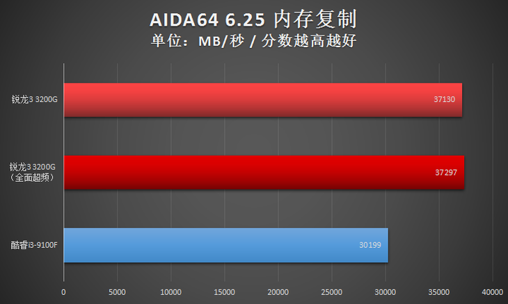 此項(xiàng)目,全面超頻之后的AMD銳龍3 3200G處理器整體占優(yōu)。畢竟AMD平臺(tái)支持的內(nèi)存類(lèi)型更高。