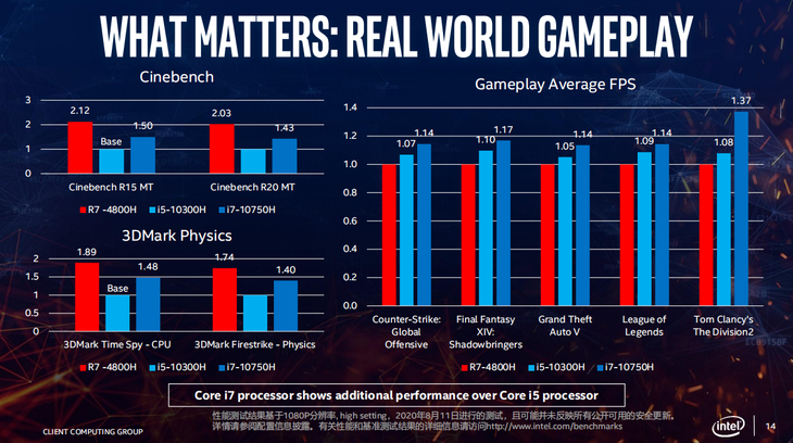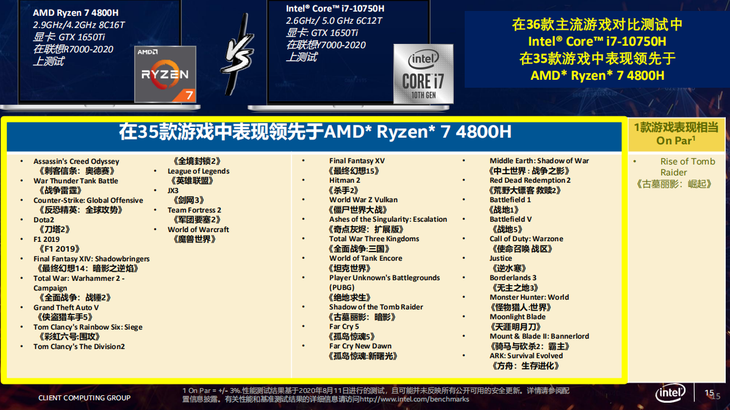 作為買游戲筆記本的消費(fèi)者最關(guān)心的是什么性能呢?其實(shí)就是游戲性能。而衡量游戲性能的高低當(dāng)然最關(guān)鍵的就是游戲幀頻了,這樣看來,真實(shí)游戲應(yīng)用場(chǎng)景下所體現(xiàn)出來的性能表現(xiàn),英特爾有著明顯的優(yōu)勢(shì)。