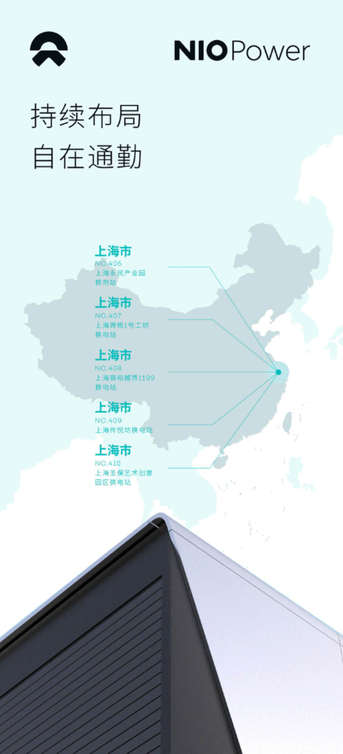 來自蔚來官微的消息。8月30號,蔚來一口氣在上海市上線了5座換電站,它們分別為上海永民產業園換電站、上海微格1號工坊換電站、上海錦和越界1199換電站、上海傳悅坊換電站和上海圣保藝術創意園區換電站。