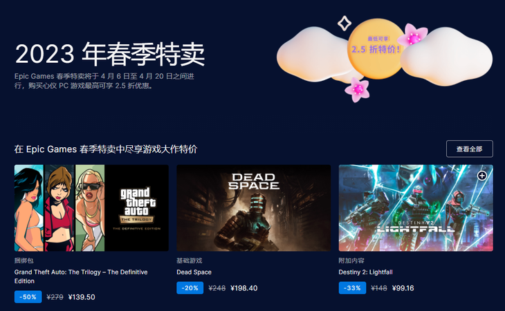 Epic開啟春季游戲促銷,多款大作可享折扣