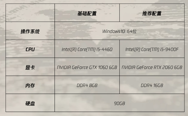 在國服官方給出的配置建議中,建議用戶基礎配置為GTX 1060顯卡,推薦配置為RTX 2060顯卡,并且預留到90GB的存儲空間。