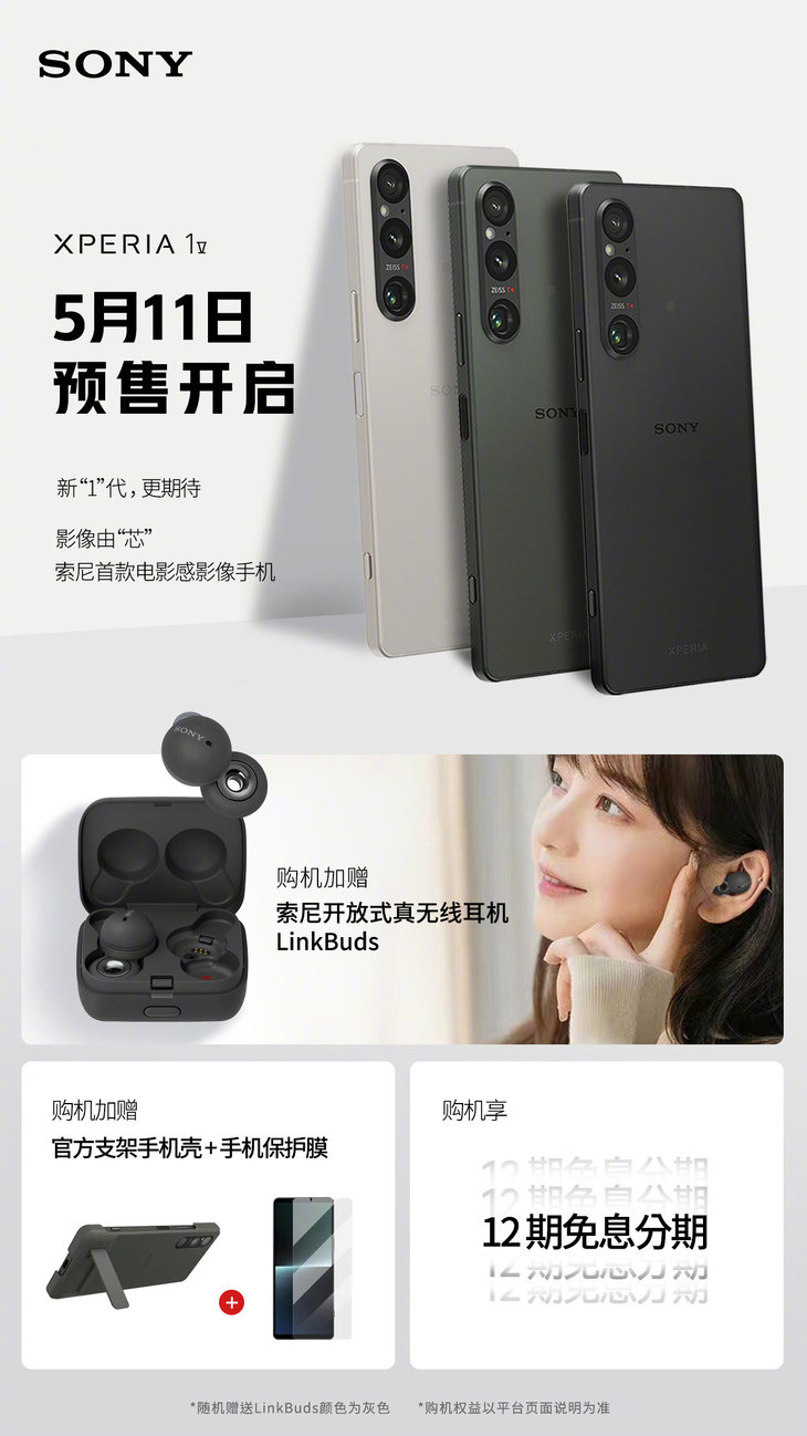 價格方面,索尼 Xperia 1 V 手機12+256GB 版本 8999 元,12+512GB 版本 9799 元,目前預(yù)售加贈官方支架手機殼以及保護(hù)膜,還有索尼的開放式真無線耳機LinkBuds,其將在6月正式進(jìn)行開售。