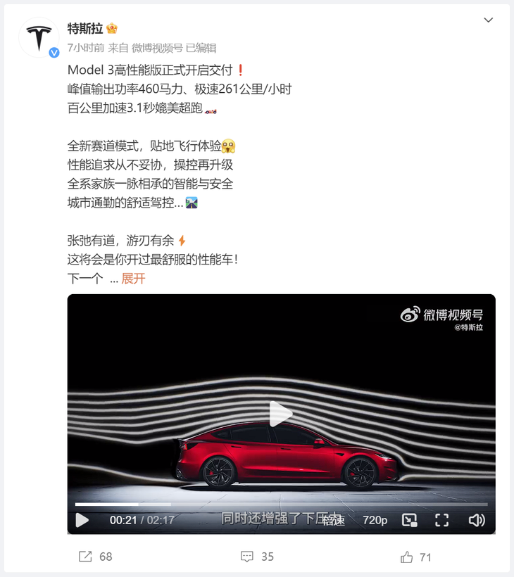 來自特斯拉官方微博的消息,特斯拉Model 3高性能版現已在國內開啟交付。