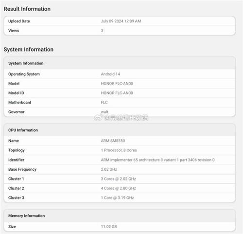 榮耀即將于7月12日舉辦新品發布會,屆時榮耀Magic V3和榮耀Magic Vs3兩款折疊屏旗艦手機將和大家見面。其中,Magic Vs3的性能評測數據已提前曝光,確認該機搭載的是高通旗艦處理器驍龍8 Gen2,與前代Magic V2相同。