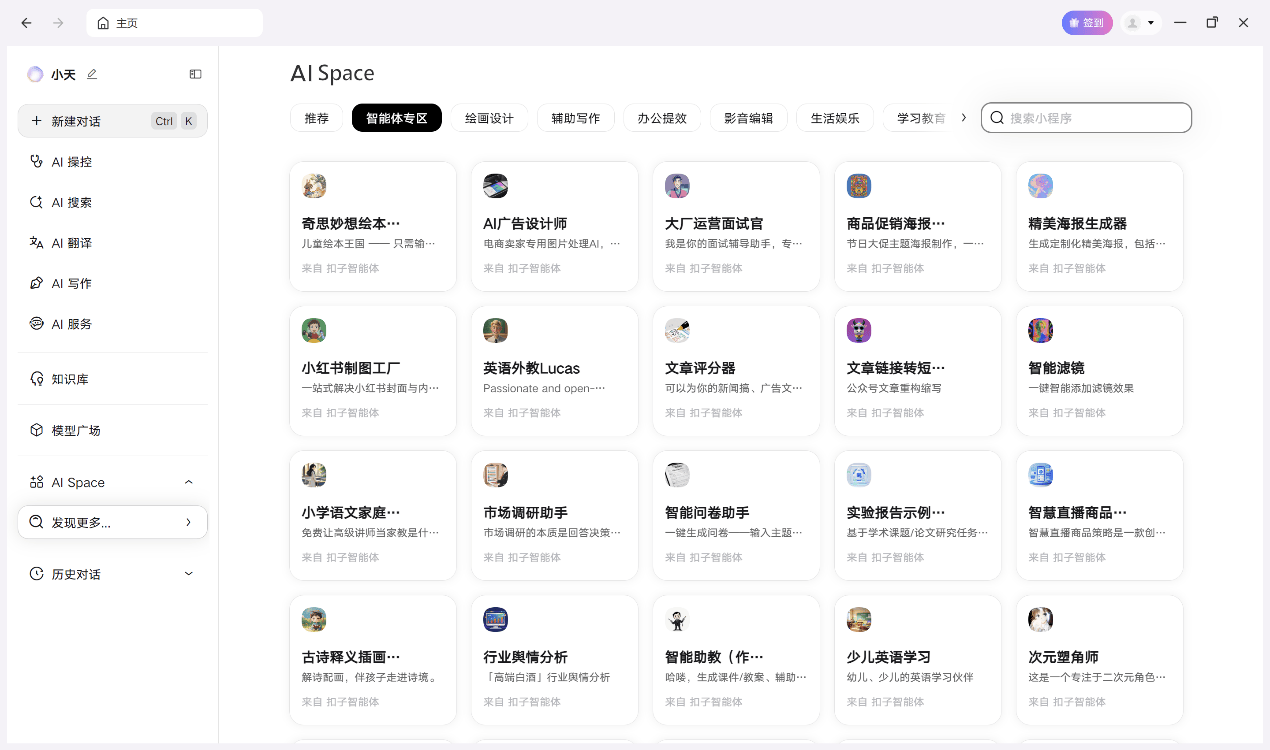 對(duì)于普通用戶而言,此次生態(tài)聯(lián)動(dòng)最直觀的改變,是天禧進(jìn)一步聚合了多元AI能力,收錄扣子開發(fā)者發(fā)布的AI智能體,真正實(shí)現(xiàn)“一個(gè)入口,萬(wàn)物可及”的體驗(yàn)效果。