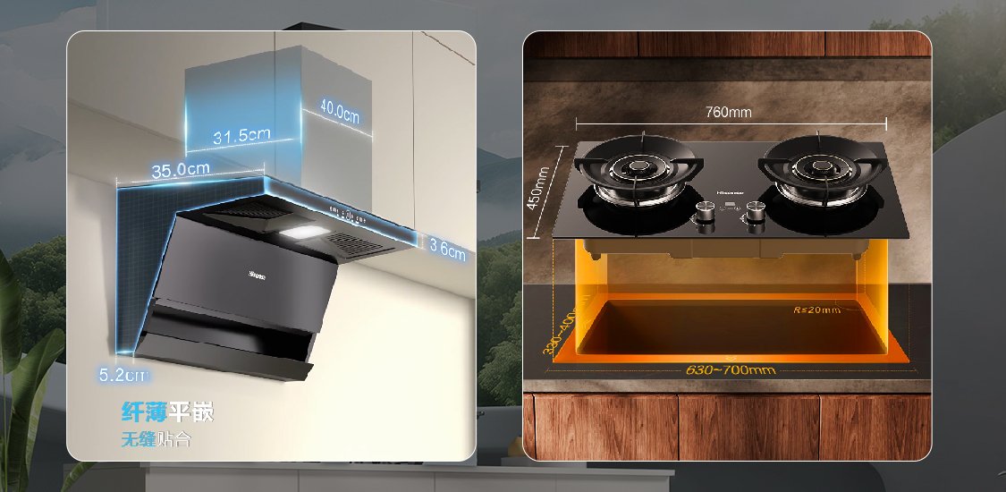 灶具安裝也十分省心。若尺寸不匹配,灶具安裝就需要專業(yè)工人進(jìn)行擴(kuò)孔或改孔操作,極易對臺面造成不可逆的損傷。海信凈魔方E套系煙灶搭配(630-700)×(330-400)mm自適應(yīng)可調(diào)底殼,能靈活覆蓋大多數(shù)臺面開孔尺寸,無需重新切割或開孔,從根本上避免了損傷臺面的麻煩。整個換新過程快速、高效,廚房無需“傷筋動骨”,就能煥然一新。