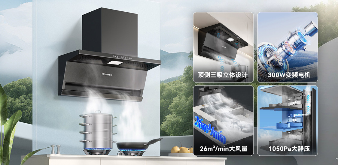 海信凈魔方E套系既能消除“裝得上”的顧慮,又能應(yīng)對“用得好”的挑戰(zhàn)。老煙機(jī)吸力不足、油煙散得慢且不凈,灶具點(diǎn)火慢、易打不著,導(dǎo)致廚房空氣污濁、墻壁滿是油污、做飯耗時,使追求高效的上班族失去烹飪樂趣,嚴(yán)重影響烹飪體驗(yàn)。