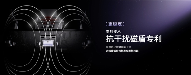 為了做到更穩(wěn)定,“源點(diǎn)星鏈”方案通過(guò) Magic 磁感優(yōu)化技術(shù),讓磁通量感知提升30%,采用全新一代旗艦級(jí)的霍爾傳感器,這款傳感器抗溫漂能力更強(qiáng),噪聲更低,其輸出信號(hào)的抖動(dòng)幅度僅2mV,遠(yuǎn)低于市面上所謂"第三代霍爾"的 11mV,還創(chuàng)新式帶來(lái)鄰鍵抗干擾專利技術(shù),讓鍵盤在游戲操作中的抗干擾性提升 60%。