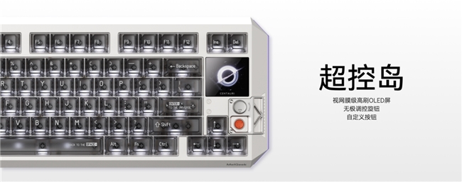 奇點(diǎn)系列磁軸鍵盤不僅擁有優(yōu)異的性能,還創(chuàng)新性地加入“超控島”的交互模塊,集成了一塊媲美 Apple Watch 屏幕素質(zhì)和交互順滑的 OLED 觸摸屏及物理旋鈕,支持自定義屏保、實(shí)時(shí)顯示 RT 參數(shù)、燈光調(diào)節(jié)、虛擬按鍵等豐富功能,未來(lái)還可以通過(guò) OTA 升級(jí),解鎖更多新奇好玩新功能,極大提升了交互效率與個(gè)性化體驗(yàn)。