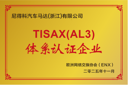 尼得科汽車馬達(dá)(浙江)有限公司榮獲TISAX(AL3)體系認(rèn)證