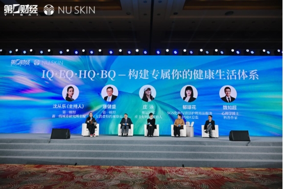 壓軸的圓桌論壇以“IQ·EQ·HQ·BQ——構建專屬你的健康生活體系”為主題,在第一財經新一線研究院主編沈從樂的主持下,第一財經大消費特約觀察員唐健盛、奧運冠軍、莊主好時光創始人莊泳、SGS化妝與清潔護理用品服務中國區總監郁瓊花、心理學博士、科普作家魏知超一起,展開了精彩對話。