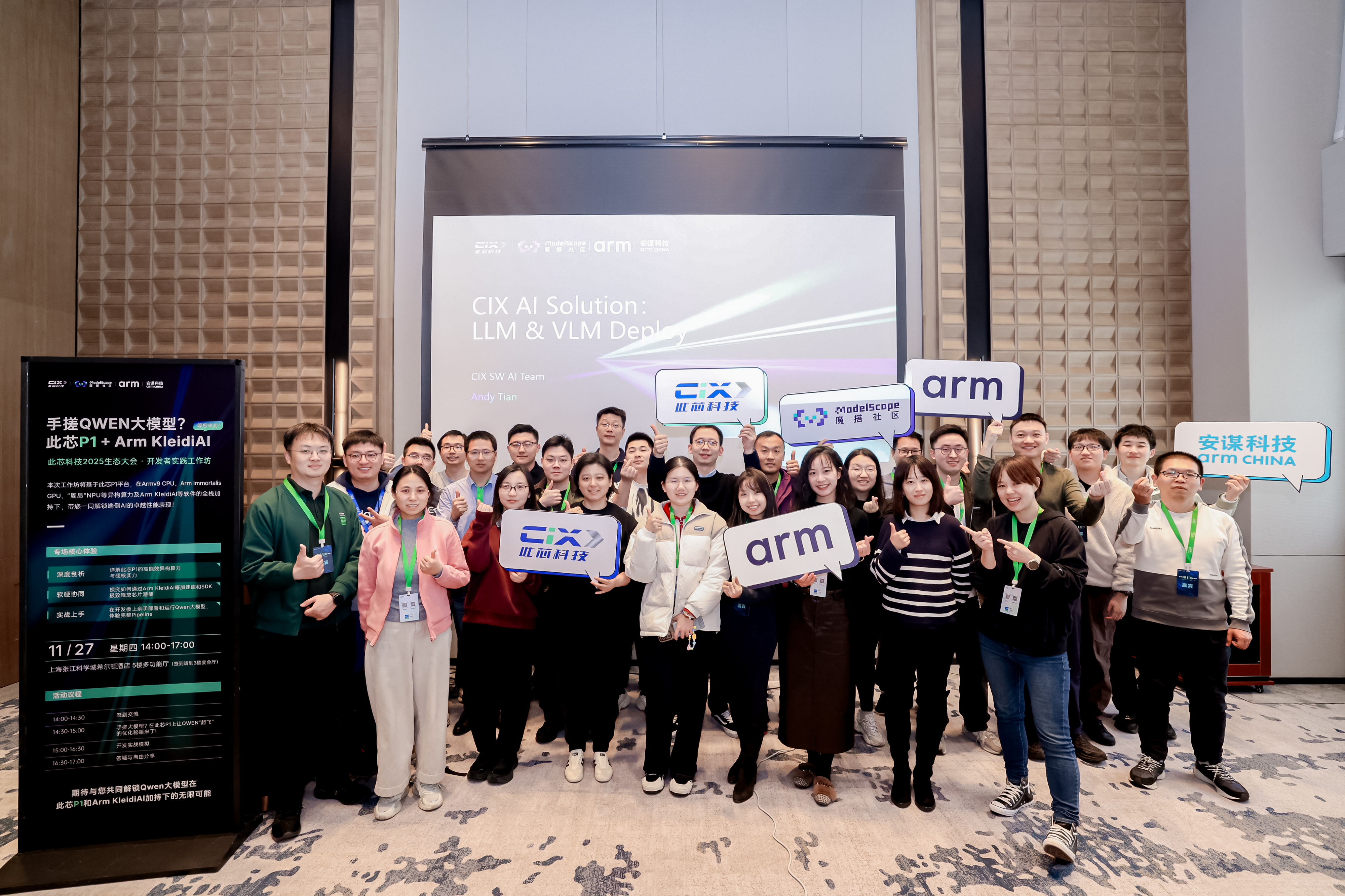 近日,由魔搭社區、Arm、安謀科技與此芯科技聯合舉辦的「萬物共芯 · 生生不息——端側AI開發者實踐工作坊」在上海成功舉辦。本次活動作為此芯科技2025生態大會的分會場,圍繞高能效異構算力在端側大模型場景的深度賦能展開,吸引了眾多開發者到場體驗。