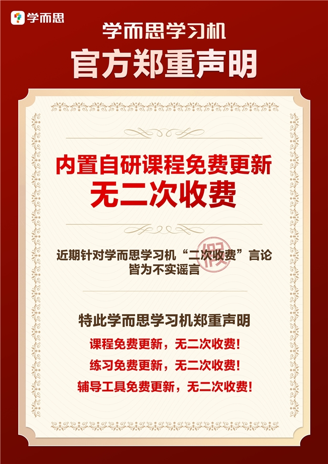 教育硬件的本質是服務于學習本身,而非通過功能拆分盈利。學而思學習機以 “無二次收費” 的堅定承諾,將海量優質資源與強大 AI 能力打包呈現,升級后的小思 AI1 對 1 服務與 98% 準確率的 AI 批改功能,讓每一分購機投入都物超所值。它不僅解決了家長對隱性收費的擔憂,更以全方位的產品優勢為孩子提供個性化、高效率的學習支持,成為家庭教育中真正省心、省錢、好用的得力助手。