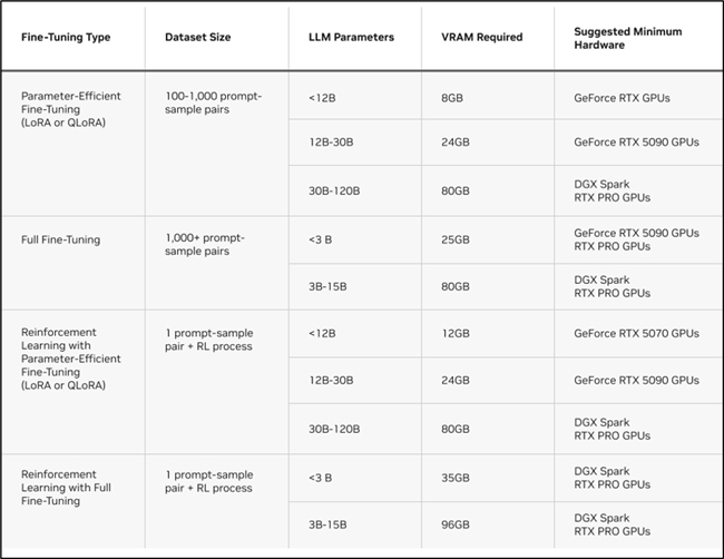 LLM 微調是一種對內存和計算要求極高的工作負載,在每個訓練步驟中都需要進行以十億次記的矩陣乘法來更新模型權重。這類重型并行計算需要依托 NVIDIA GPU 的強大算力,才能高效、快速地完成。