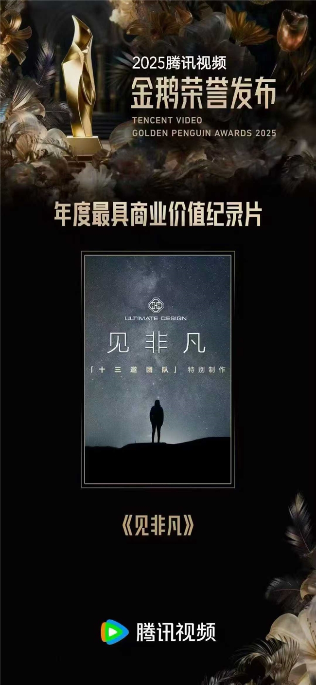 通過六期節目、六場對話,《見非凡》將“非凡”從遙不可及的標簽,轉化為一種可以被理解、被討論的人生態度,讓非凡在不同的人生路徑中自然顯形。節目自播出以來,狂攬超170次熱搜熱榜,相關話題閱讀量突破14億,#惠英紅的非凡是苦難磨出的鎧甲#、#梁家輝過了120種非凡的人生#、#汪順教許知遠游泳#等話題全網熱議,被網友評價為“適合低谷期反復看的紀錄片”,并榮獲2025騰訊視頻金鵝榮譽“年度最具商業價值紀錄片”。