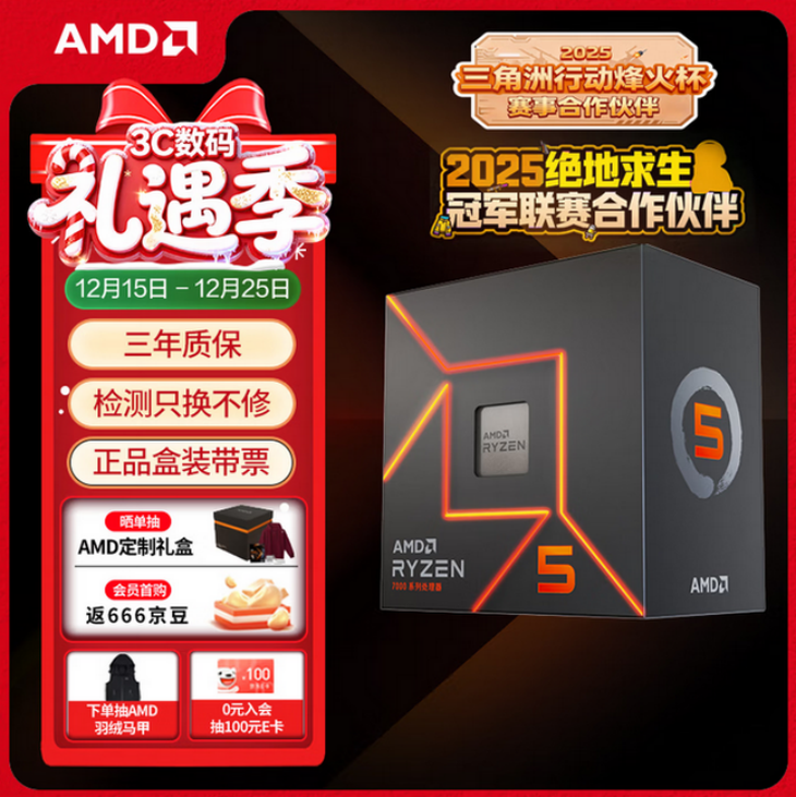 目前AMD 銳龍5 7500F處理器在京東商城自營旗艦店的報(bào)價(jià)是989元,成為京東旗艦店會(huì)員還有0元入會(huì)抽100元E卡,首購返666京豆和曬單抽AMD羽絨馬甲和定制禮盒等活動(dòng)。對于想要選購一款可以戰(zhàn)未來的千元內(nèi)的游戲處理器來說,AMD 銳龍5 7500F這款A(yù)M5平臺(tái)最便宜的六核產(chǎn)品就是大家唯一的選擇,面對市面千元+的競品來說,聰明的DIY玩家經(jīng)過詳細(xì)比對之后一定可以做出最正確的選擇,為2025年劃上一個(gè)完美的句號。
