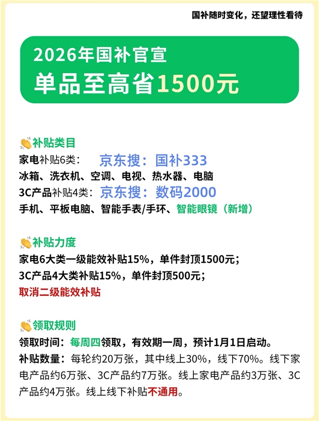 2026國補繼續!2026年國補政策官宣:1月1日0點開搶!2026年手機數碼家電蘋果國補最新領取方法入口更新