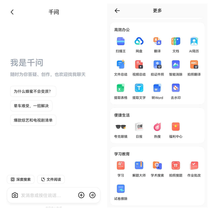 作為首個在鴻蒙系統中接入懸浮窗搜題能力的應用,鴻蒙版夸克成為大學生的“專業解題工具”,搜題過程無需切屏,解決實際應用痛點。同時,其宣布已正式接入千問對話助手,“大模型+應用場景”的深度綁定的模式,讓夸克在AI瀏覽器賽道具備差異化競爭優勢,滿足職場辦公、深度學習、專業創作等更復雜的用戶需求。