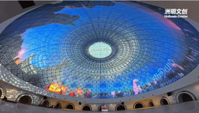 近日,在山西懷仁陶瓷科技藝術創新中心正式啟用的同時,一項極具挑戰性的顯示工程也同步完成——一塊面積超過2000平米、直徑約40米的LED半球穹頂顯示系統投入使用。