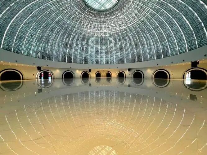 在項目方案設計過程中,中庭的半球穹頂空間一直被反復討論。作為項目最具標志性的展示亮點,它既是靜態建筑景觀,也是動態影像載體。