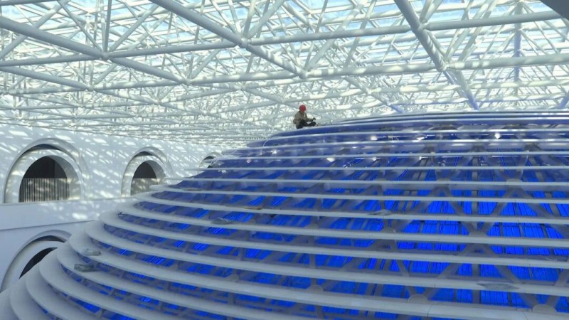 UVF系列的一項重要特性,是通透率。它讓穹頂在呈現影像的同時,仍然保留建筑中庭應有的光線與空間感。再加上8kg/㎡的輕量化設計,使得整體結構在安全性與穩定性上更為可控。