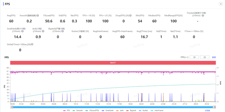 ? ? ? ? 針對(duì)性能與畫面渲染要求更高的《原神》,我們開啟高畫質(zhì)+60幀設(shè)置,采用新版本那夏鎮(zhèn)跑圖測(cè)試(該地圖場(chǎng)景復(fù)雜,渲染壓力大,對(duì)硬件要求極高),半小時(shí)游戲過程中平均幀率穩(wěn)定在60fps滿幀,幀率曲線幾乎呈一條直線,沒有任何明顯波動(dòng),平均功耗不到3.8W,展現(xiàn)出超強(qiáng)的性能調(diào)校能力。