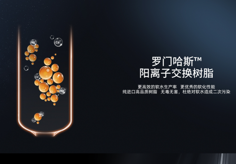 精選羅門哈斯?陽離子交換樹脂等優質濾料組合,有效去除鈣、鎂離子,提供純凈柔和水質。每一次用水都成為享受,軟化效果出色。