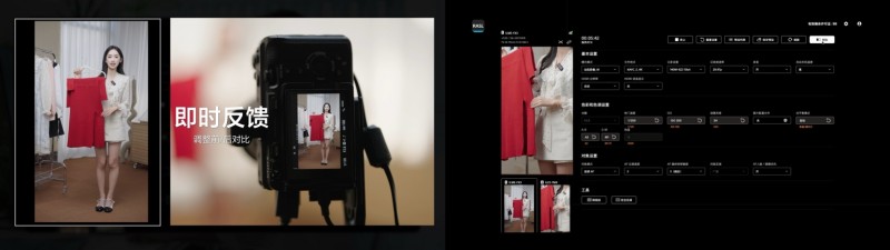 工程師在調整參數時可查看相機傳輸畫面,即時了解直播畫面變化,通過點擊“對比”按鈕,可切換“調整前/后”的畫面效果,直觀地查看色彩、亮度、還原度等細節差異,優化提升直播間畫面呈現效果,高效靈活滿足不同直播場景的需求。