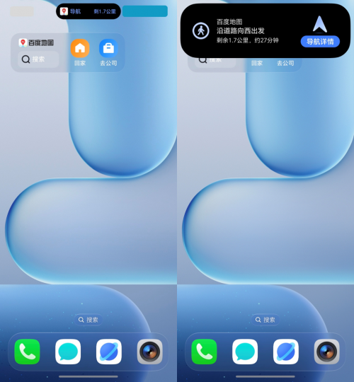 在步行、騎行等多任務并行場景中,用戶需要持續關注導航信息卻又可能頻繁切換手機應用的場景,榮耀MagicOS的靈動膠囊功能提供了優雅的解決方案。百度地圖將步騎行的核心導航信息,如行進方向與剩余距離,實時顯示于屏幕頂部的靈動膠囊中。即使用戶將應用置于后臺或瀏覽其他內容,關鍵信息依然抬眼可見。這解決了用戶以往必須在應用間反復切換或忍受導航中斷的困擾,實現了多任務并行下的信息連續體驗。