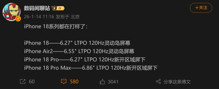 你更期待iPhone 18 Pro的屏下Face ID,還是iPhone闊折疊的全新形態?歡迎在評論區聊聊你的看法~