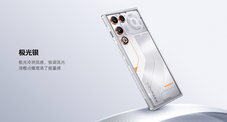 外觀設計上,紅魔11 Air帶來星塵白、量子黑、極光銀三款潮流配色,在延續紅魔獨有的透明美學的基礎上,首次采用全系透明機身設計,并將黑膠唱片的復古質感、賽車跑道的速度激情與幾何圖形元素融入其中,搭配3D弧形玻璃后蓋,既彰顯極致科技感,又保證了舒適的握持手感。同時標志性的背部RGB燈得到保留,進一步提升電競氛圍。