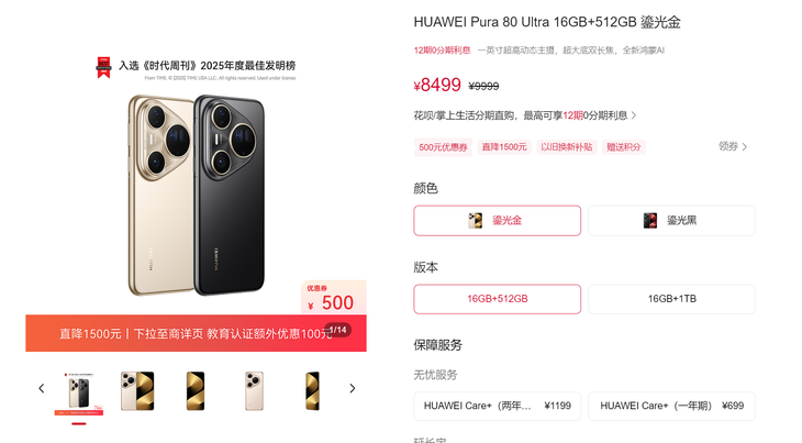 在本次促銷中,Pura80系列的優(yōu)惠幅度同樣引人注目,最高可享受2000元的折扣。其中,Pura80 Ultra的降價幅度最大,優(yōu)惠金額達(dá)到2000元(直降1500元+500元優(yōu)惠券),而Pura80 Pro+和Pro版也分別享有1500元的降價。Mate 70 Pro+和Mate 70 Pro同樣有1800元的優(yōu)惠,此外,多款機(jī)型還支持12期0利息分期付款,進(jìn)一步降低了購機(jī)門檻。