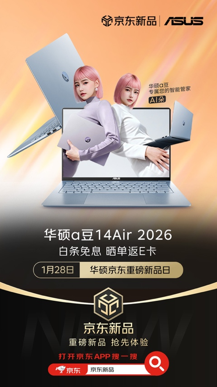 1月28日,“華碩京東重磅新品日”正式開啟。華碩無畏、a豆、靈耀及ProArt四大系列全新升級,華碩無畏Pro14 2026、無畏Pro16 2026、a豆14 Air 2026、靈耀16 Air 2026以及ProArt創13 2026等多款AIPC全能本新品在京東首發,全面迎接AI PC時代的到來。即日起至2月11日期間,來京東購買華碩AIPC全能本新品,不僅可享部分地區15%國家補貼,更有至高12期免息、購新品抽免單活動,為消費者帶來開年煥新的絕佳契機。