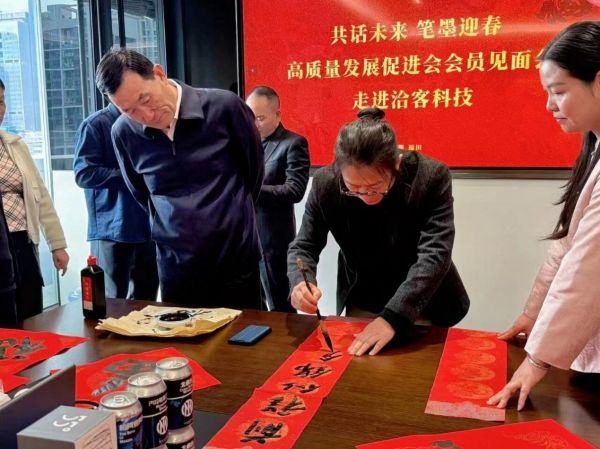 深圳市企業(yè)高質(zhì)量發(fā)展促進(jìn)會(huì)書記蔡杰對本次活動(dòng)的成功舉辦給予評(píng)價(jià)。他表示,此次會(huì)員見面會(huì)走進(jìn)洽客科技,既是對監(jiān)事長單位工作的肯定,也是借助洽客科技的平臺(tái)優(yōu)勢,推動(dòng)會(huì)員企業(yè)互聯(lián)互通的重要舉措。筆墨之間寄托新春期許,交流之中凝聚發(fā)展合力,相信在洽客科技的引領(lǐng)與帶動(dòng)下,會(huì)員企業(yè)將進(jìn)一步深化合作、攜手共進(jìn),在新一年實(shí)現(xiàn)更高質(zhì)量的發(fā)展。