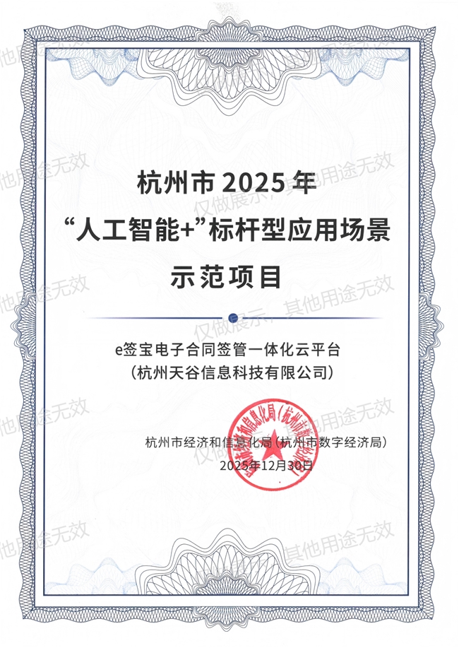 作為生于杭州、長于杭州的科技企業,e簽寶既是這一戰略的受益者,更是積極的共建者。此次入選“人工智能+”標桿型應用場景示范項目,意味著e簽寶的實踐已成為杭州AI賦能產業升級的典型案例。它證明了,在最具體的商業場景中,在最細微的合同條款里,人工智能同樣可以釋放巨大的能量。