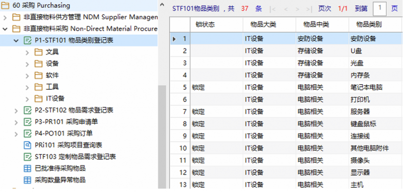 物品類別規范化管理:非直接物料管理的核心在于物品類別規范。在勤哲Excel服務器中,P1-STF101模塊用于物品類別設置,所有采購物品均歸類至對應財務科目。類別設置由部門經理與財務部門確認,確保物料歸屬清晰,為財務核算和報表生成提供可靠基礎。系統自動顯示已有類別,避免重復錄入,同時允許在必要時創建新類別,使數據組織規范化,同時體現使用者操作水平。