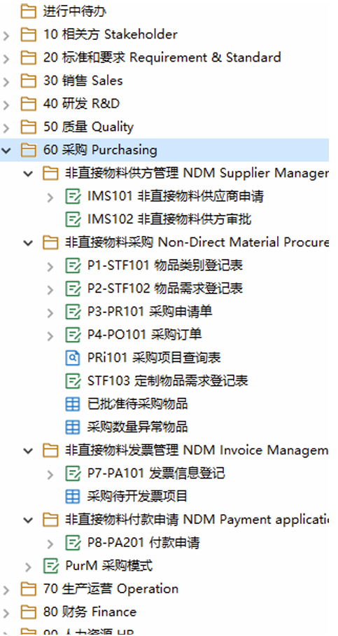 非直接物料采購流程在勤哲Excel服務器中被清晰拆解為采購和付款兩大環節,分別對應滿足需求部門和供方的核心訴求。采購環節覆蓋填寫需求、提交采購申請(PR)、生成采購訂單(PO)、入庫及領用出庫五個步驟;付款環節涵蓋發票信息錄入、付款文件準備以及ERP錄入三個步驟。平臺通過關鍵字段自動關聯各環節數據,實現流程貫通,避免信息孤島和重復錄入,提高了整體效率和準確性。