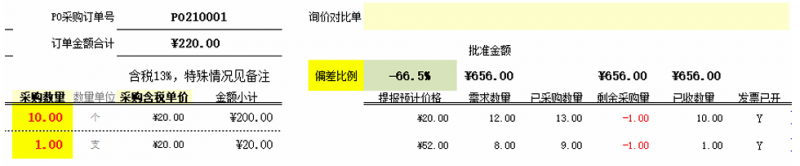 采購訂單生成與數量控制:在勤哲Excel服務器中,通過P4-PO101生成采購訂單時,系統自動帶出對應PR信息,用戶只需錄入采購數量和含稅單價。平臺自動校驗采購數量,未完成數量會在后續訂單中繼續提示,避免超額采購或遺漏。訂單保存后,可導出PDF用于供應商確認,實現標準化、可控采購操作,提升采購執行效率與準確性。