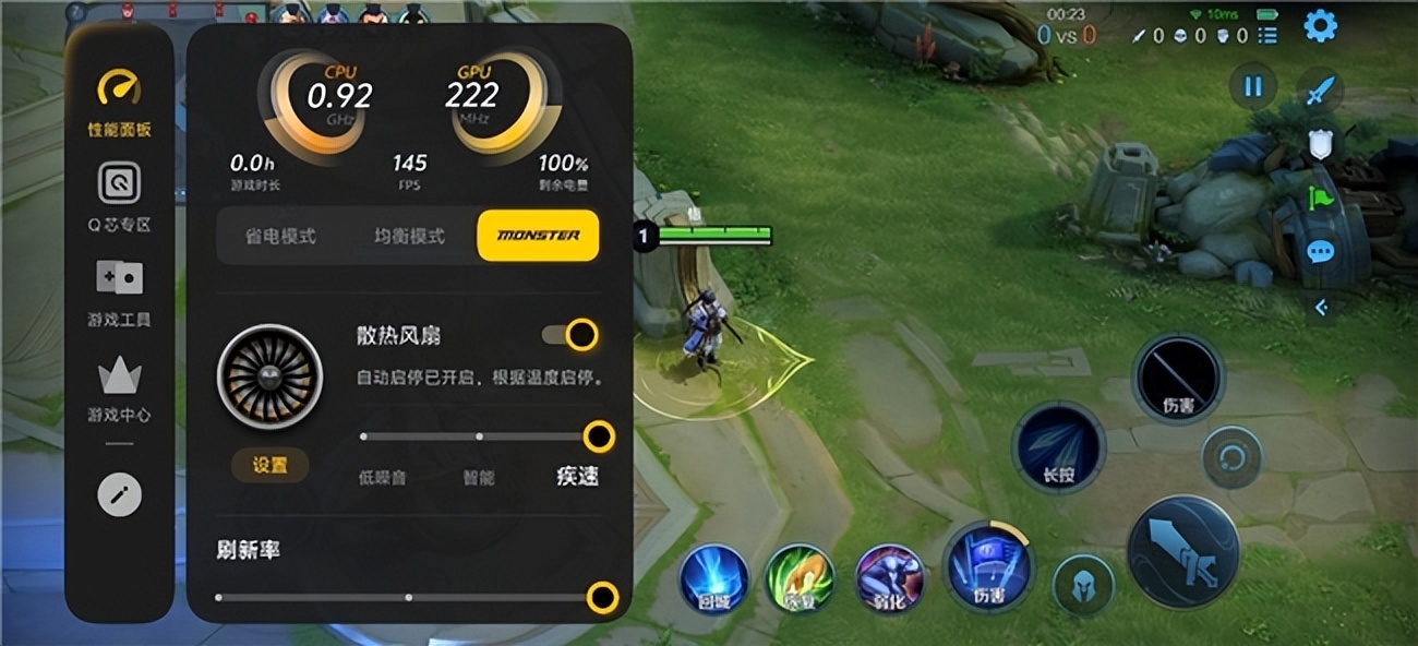 幀率穩(wěn)如磐石:開啟散熱疾速模式后,實(shí)測(cè)《王者榮耀》,1% Low 幀與平均幀雙滿幀,就算 10 人團(tuán)戰(zhàn)技能滿天飛,幀率也紋絲不動(dòng),全程 0 掉幀、0卡頓,技能釋放、走 A、拉扯絲滑到底,機(jī)身溫升僅 37.3℃,全程性能拉滿無降頻。