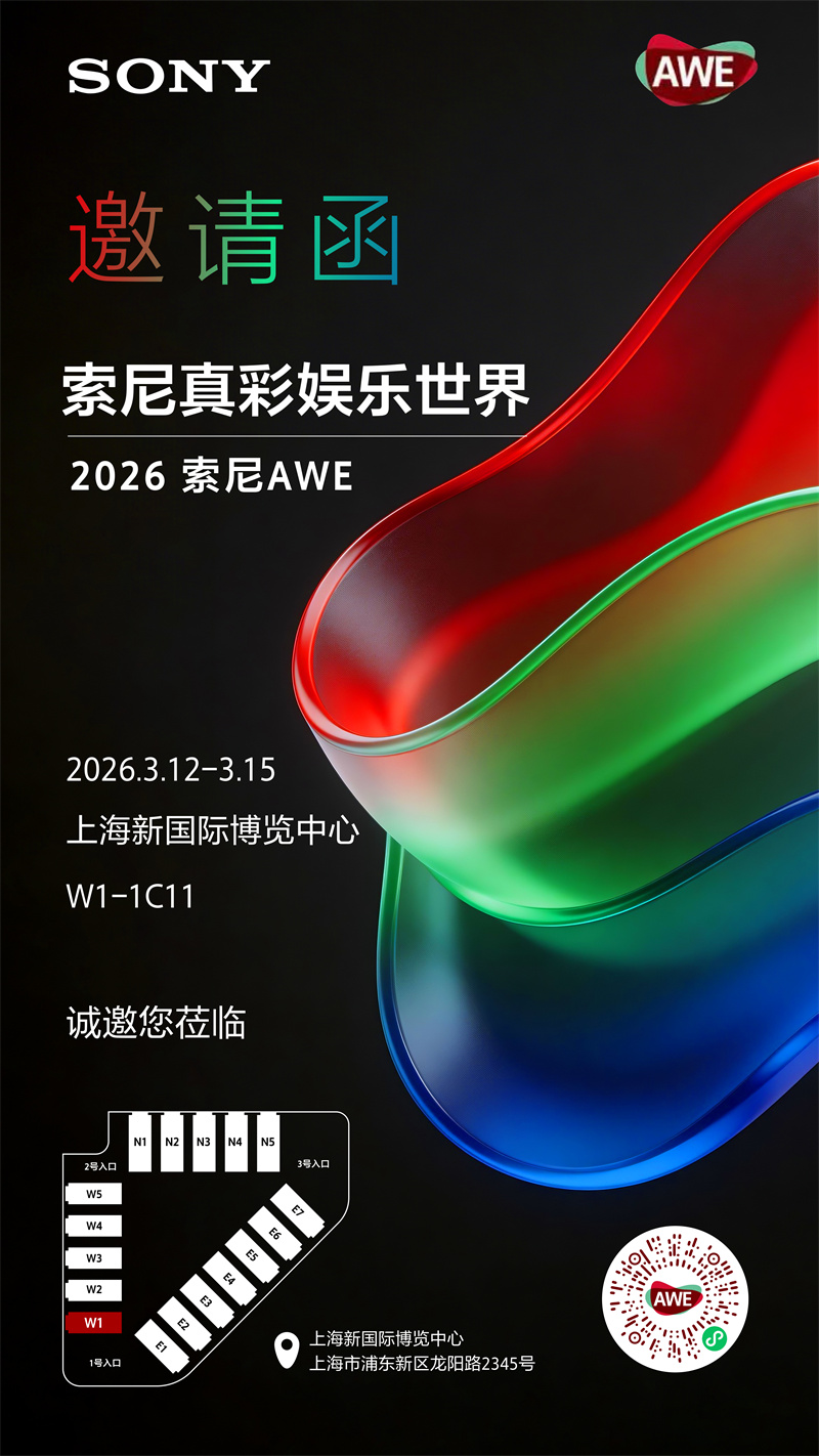 2026年3月12-15日,AWE 2026中國家電及消費電子博覽會將在上海啟幕,索尼將同時參展雙館,以「索尼真彩娛樂世界」為主題重磅亮相上海新國際博覽中心主會場(W1-1C11),同步在東方樞紐國際商務合作區分會場拓展全場景娛樂體驗。