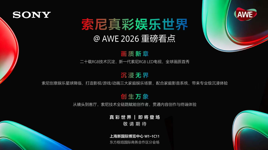AWE 2026重磅預告:索尼真彩娛樂世界,盡在W1-1C11現場!