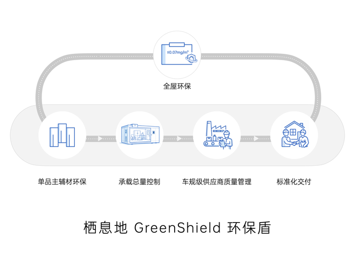 棲息地 S32 通過行業獨有的環保保障體系「GreenShield環保盾」,通過單品主輔材環保、承載總量控制、車規級供應商管理、標準化交付四大環節,從系統層面構建全鏈路環保保障,將全屋甲醛釋放量嚴格控制在≤0.07mg/m3,嚴于國際18883標準(≤0.08mg/m3),為用戶自采家具的甲醛釋放預留充足安全空間,真正實現「交付當天即是入住第—天」,這是傳統攢機式住宅無法實現的系統性環保能力。