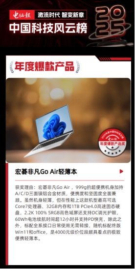 以用戶需求為導向,以技術創新為內核,宏碁深耕產品研發賽道,打造出多款適配全場景的優質產品,此次非凡Go Air、掠奪者·戰斧9 Neo S、掠奪者·刀鋒 8、非凡Go Edge四款明星機型接連摘桂,盡顯宏碁在輕薄本、游戲本領域的硬核研發實力與精準市場洞察力。