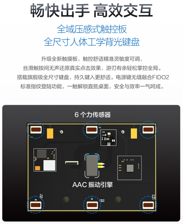 四個可自定義的商用藍鍵,可一鍵打開常用軟件或執行復雜指令,省去繁瑣操作。電源鍵支持FIDO2標準指紋登錄功能,一觸解鎖,安全高效。