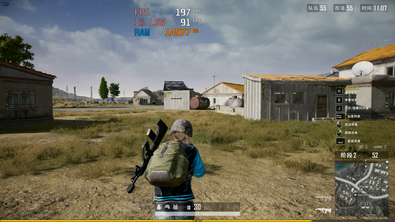 《PUBG》在三極致畫質下跑圖,平均197FPS左右,Low幀91FPS上下。