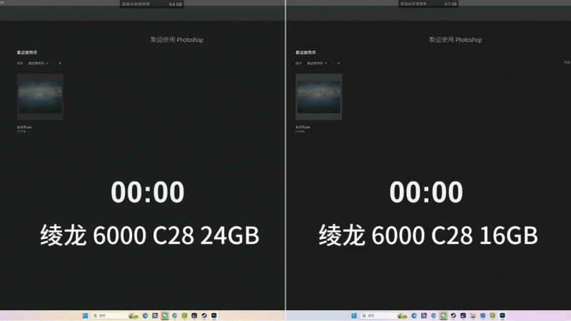 而24GB星空圖加載測試完全不同,由于本身素材體積就遠超16GB,所以即便同樣是6000 C28,單條24GB內存的加載速度也要比16GB快15秒左右。