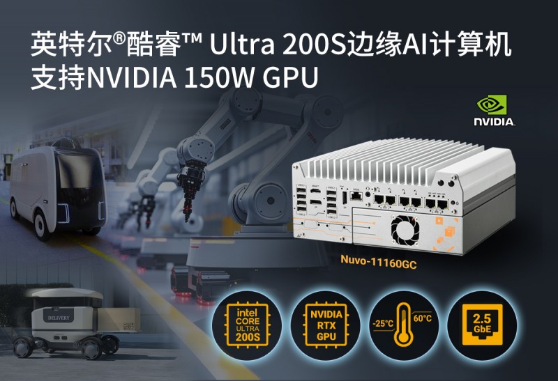 強固型嵌入式計算機廠商Neousys宸曜科技發(fā)布了一款緊湊的強固可靠型邊緣AI計算機Nuvo-11160GC,專為嚴(yán)苛的工業(yè)和機器人應(yīng)用而打造。Nuvo-11160GC搭載了英特爾? 酷睿? Ultra 200S處理器,同時最高可支持150W NVIDIA? RTX GPU,能夠在惡劣環(huán)境中為邊緣端應(yīng)用提供實時的人工智能推理和數(shù)據(jù)處理。Nuvo-11160GC擁有強固的機構(gòu)設(shè)計、-25℃至60℃寬溫運行能力和高效能CPU性能,可確保系統(tǒng)在復(fù)雜環(huán)境中可靠運行。